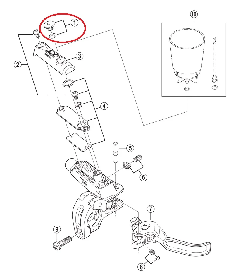 Shimano Entlüftungsschraube mit O-Ring auf Bremsgriff – Ausgleichsbehälter.